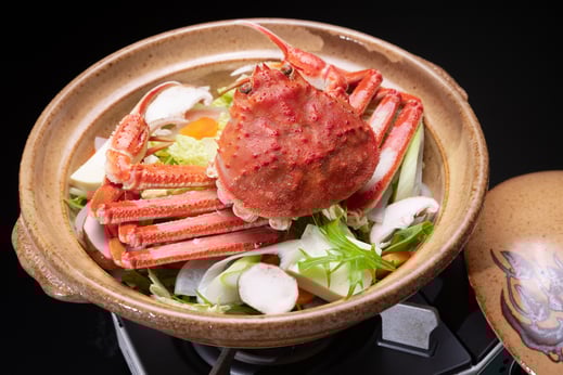 松栄館特製の和風出汁で仕上げた蟹すき鍋にはそれだけで蟹一杯付き!!(オオズワイガニ 約300g)